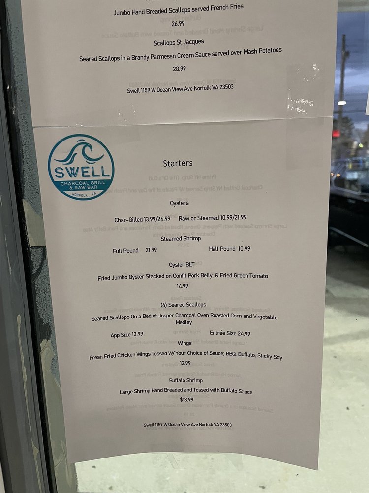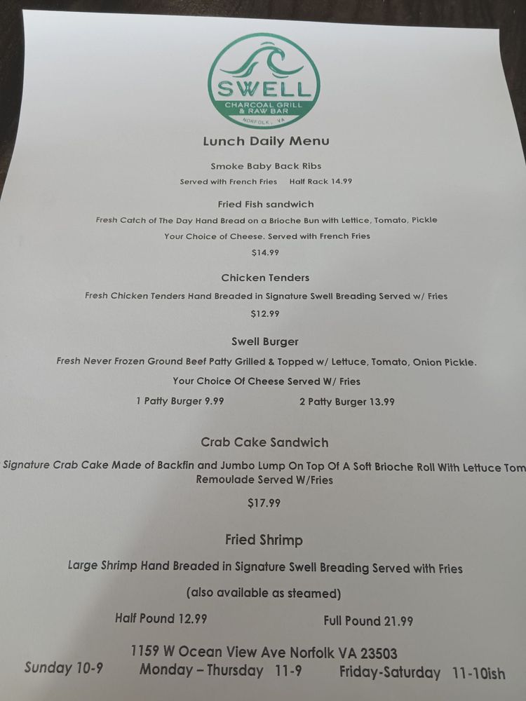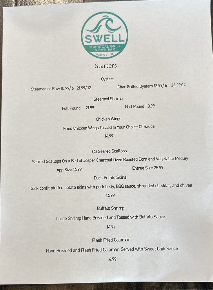 Welcome to Swell Charcoal Grill and Raw Bar, a seafood haven nestled at 1159 W Ocean View Ave, Norfolk, VA. This culinary gem features an inviting menu that emphasizes fresh, high-quality seafood prepared with a unique twist.